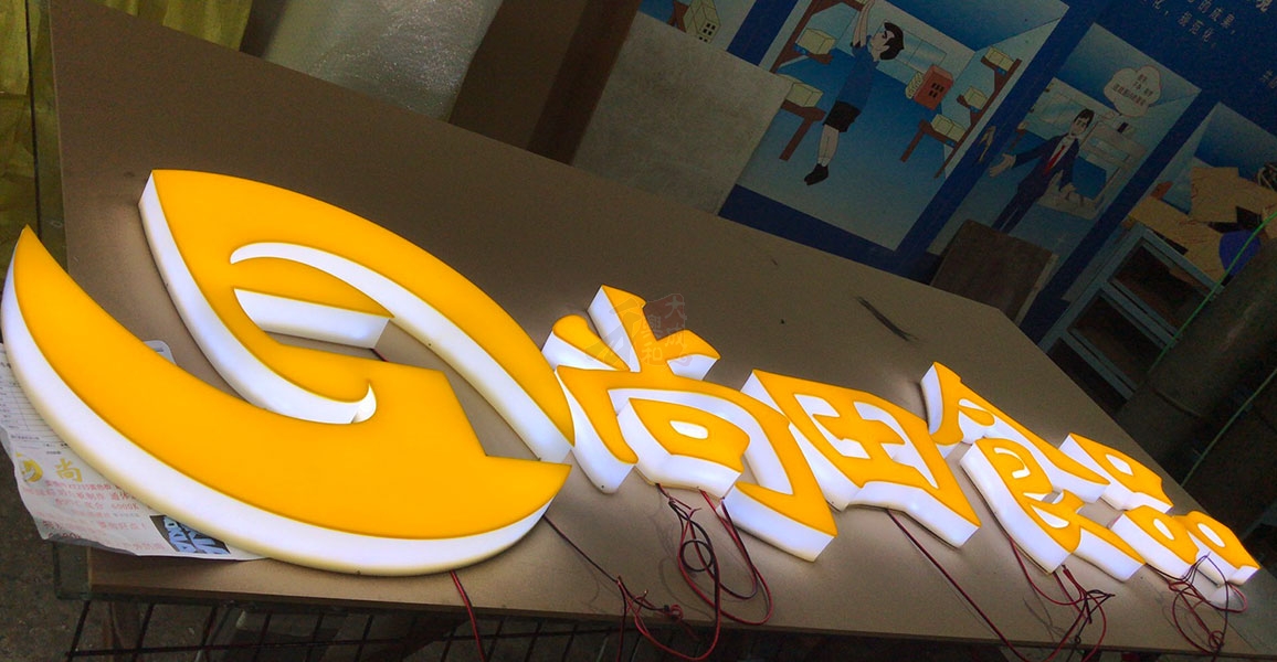 亚克力通体发光字,由亚克力材质围边、亚克力面板与PVC底、LED模组组成。亚克力通体发光字又被称作是三面发光字,发光后正面与侧面都发光,所以才会达到通体发光的效果。